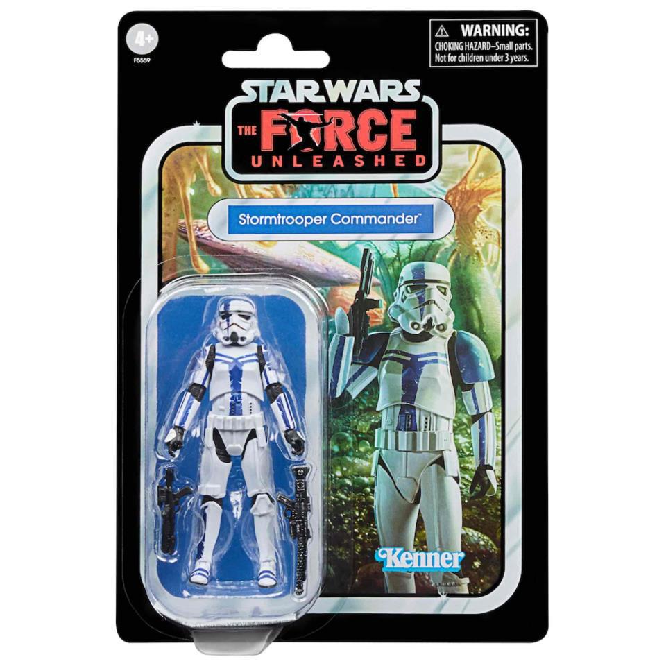 Hasbro presenta dentro de su colección Vintage Collection la figura de un Comandante Stormtrooper basado en el juego Star Wars The Force Unleashede. el juego sigue las aventuras del aprendiz secreto de Darth Vader, entrenado para rastrear y destruir a los Jedi, mientras los comandantes de Stormtroopers dirigen tropas imperiales en la batalla. Se trata de una figura articulada hecha en PVC que mide 9,5 cm e incluye 2x blasters.