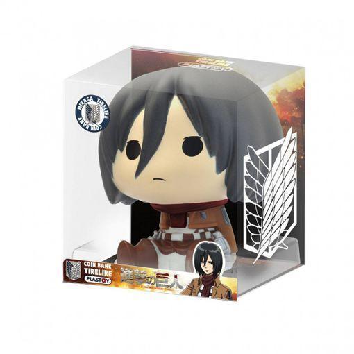 Plastoy presenta esta vistosa hucha de Mikasa en su graciosa versión Chibi, basada en el personaje de la serie Attack on Titan.